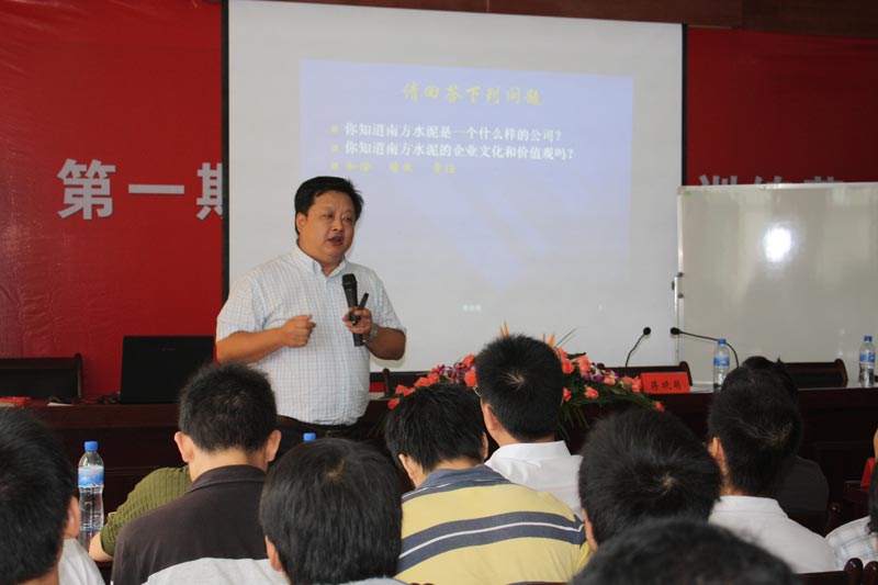 來自各部門、區(qū)域公司、成員企業(yè)錄用的158名應(yīng)屆大學畢業(yè)生參加了此次培訓。期間邀請了執(zhí)行副總裁蔣曉萌、執(zhí)行副總裁陳長征、高級顧問馬維平、人力資源部總經(jīng)理鄧勇莉、生產(chǎn)技術(shù)部副總經(jīng)理程政分別作了與南方水泥共贏、“南方水泥——我們的家”、“職業(yè)化員工——從成長、成熟到成功”、團隊建設(shè)與業(yè)績文化、生產(chǎn)企業(yè)的班組管理等專題講座,并結(jié)合國慶60周年開展了愛國主義教育。